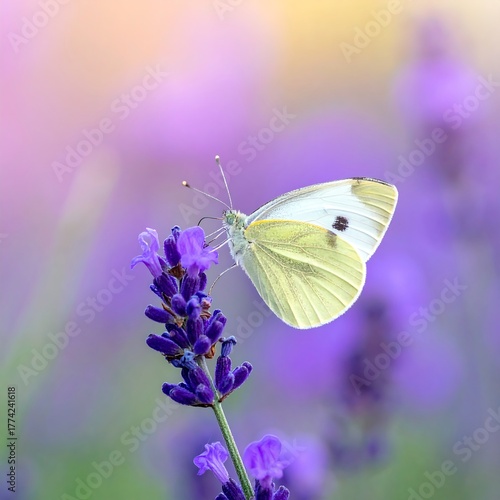 © jeri, Naklejka premium Close-up of a white butterfly on vibrant purple lavender