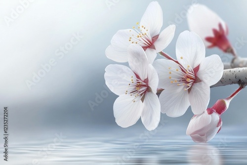 © Space Priest, Fototapeta premium Close up of a white flower with a blue background