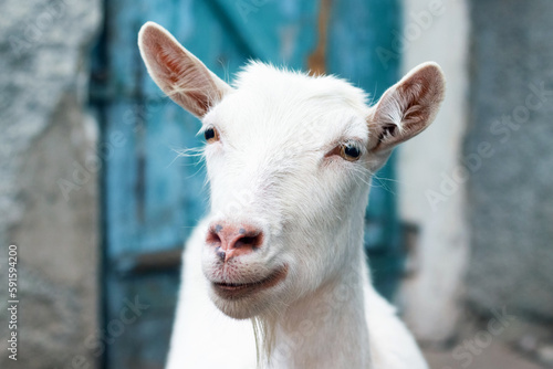 © Volodymyr, Obraz premium Close-up of a white goat on a farm