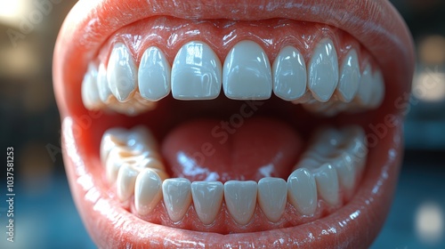 © hugy, Fototapeta premium Close-Up of a White Man's Mouth Showing His White Teeth