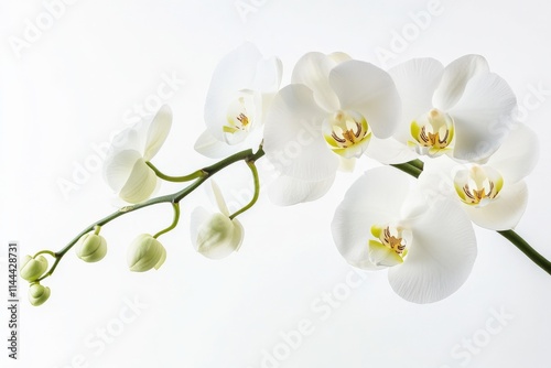 © Priya, Obraz premium close up of a white orchid with green buds against a white background
