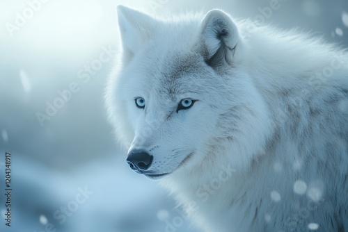 © Artistry, Obraz premium Close-up of a white wolf with striking blue eyes in a snowy background
