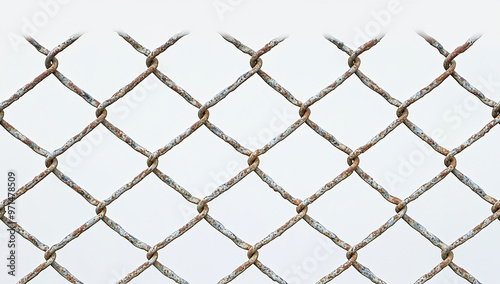 © Lilimanatasa, Naklejka premium Close-up of a wire mesh fence isolated on a white background