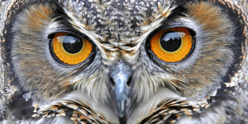 Obraz premium Close-up of a wise owl's face, with its piercing eyes and intricate feather...