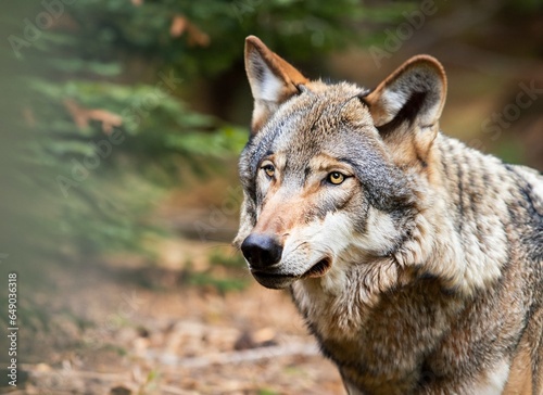 © GWai, Fototapeta premium CLOSE-UP OF A WOLF IN THE FOREST