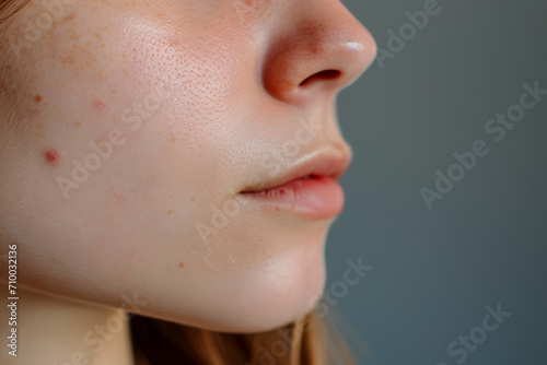 © mila103, Obraz premium close-up of a woman chin with a small mole