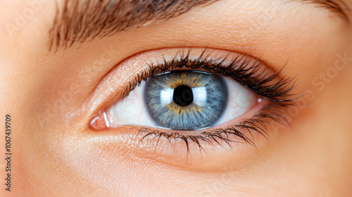 © Vertigo Images, Obraz premium Close-up of a woman's blue eye with long eyelashes.