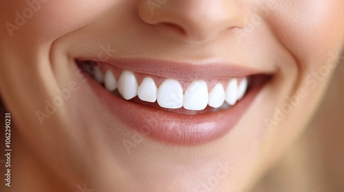 Fototapeta premium Close-up of a woman's bright, healthy smile with perfectly aligned white...