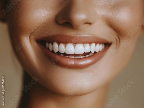 Fototapeta premium Close-up of a woman's dazzling white teeth and pink lips.