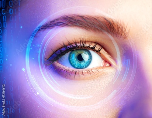 Fototapeta premium Close-up of a woman's eye with digital overlay
