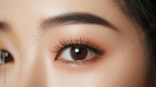 © Rere_Art151, Fototapeta premium Close-up of a Woman's Eye with Long Eyelashes and Glitter Eye Shadow