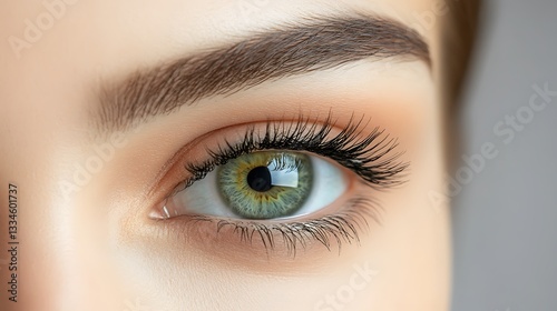 © Luluk, Obraz premium Close-up of a woman's eye with long eyelashes and natural makeup.