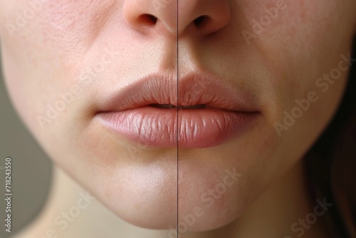 © Fotograf, Obraz premium Close up of a woman's face showing a double chin. This image can be used to depict body positivity, aging, weight gain, or health and beauty concepts