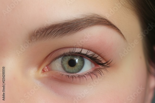 © juliars, Obraz premium Close up of a woman's green eye, showcasing perfect eyebrow shaping and subtle eyeshadow