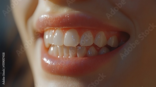 © Visual AI Engine, Fototapeta premium Close-up of a woman's healthy, bright smile showing even, white teeth and pink lips.