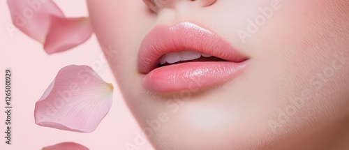 © Lifestyle Images, Obraz premium Close-up of a woman's lips. the lips are full and glossy, and the skin appears to be smooth and well-groomed.