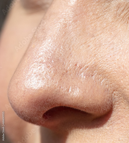 © schankz, Fototapeta premium Close-up of a woman's nose. Macro