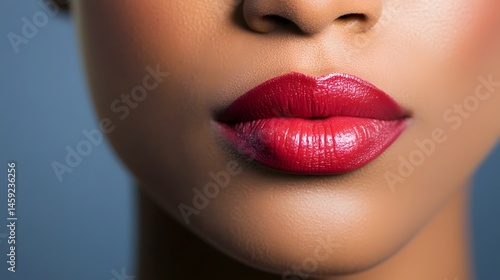 Fototapeta premium Close-up of a woman's red lips making a 'shhh' gesture