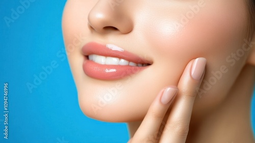 © muhammad, Obraz premium Close-up of a woman's smiling face with healthy skin.