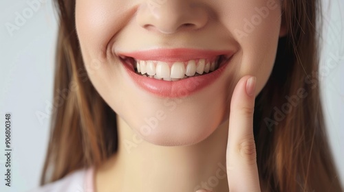 Obraz premium Close-up of a woman's smiling mouth and finger