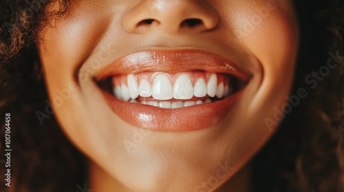© Elkhan Babayev, Obraz premium Close-up of a woman's sparkling smile, reflecting oral hygiene, dental care, and morning routines.