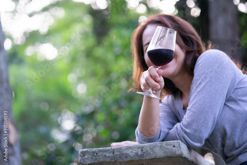 © manit, Naklejka premium Close-up of a woman with a glass of wine.