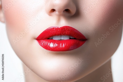 © twilight mist, Fototapeta premium Close up of a womans lips with red lipstick