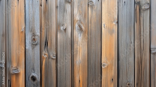 © 69, Fototapeta premium Close-up of a wooden fence, highlighting the grain and texture of the wood planks