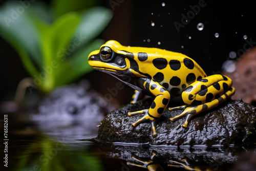 Obraz premium close-up of a yellow and black frog, wildlife documentary photography