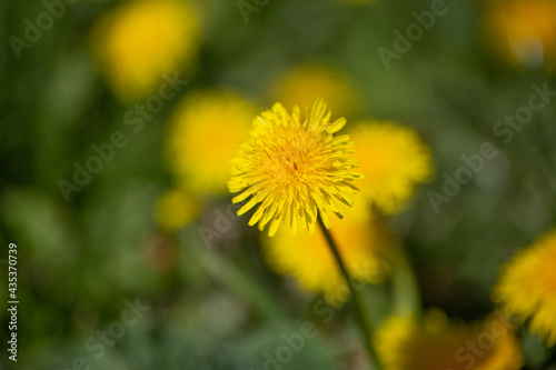 © puhimec, Naklejka premium Close-up of a yellow dandelion on a blurred background.