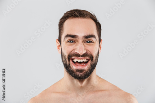 © Drobot Dean, Obraz premium Close up of a young handsome bearded shirtless man