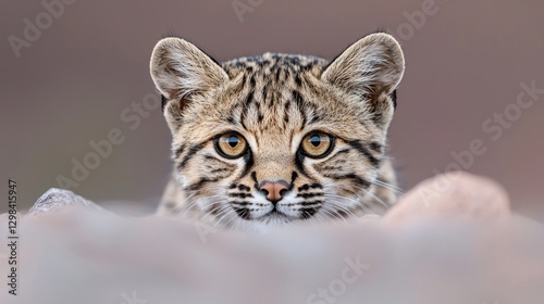 © KIMEHIME, Fototapeta premium Close-up of a young ocelot. Hidden in the landscape. Suitable for nature or wildlife publications