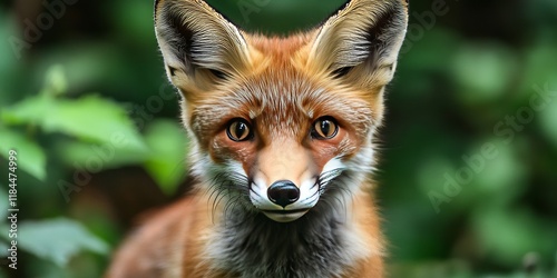 Fototapeta premium Close up of a young red fox face amidst a natural background, showcasing the...