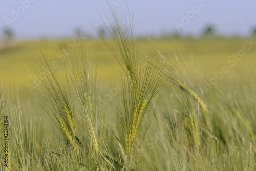 © CLement, Obraz premium Close up of a young wheat branch, with seeds against blurry background