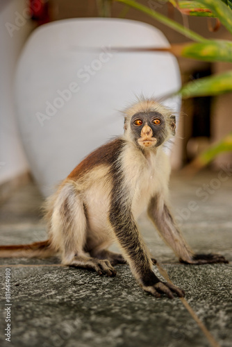 Obraz premium Close-up of a Zanzibar Red Colobus monkey with captivating orange eyes.