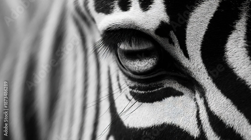 © Olga, Fototapeta premium Close-Up of a Zebra's Eye in Black and White