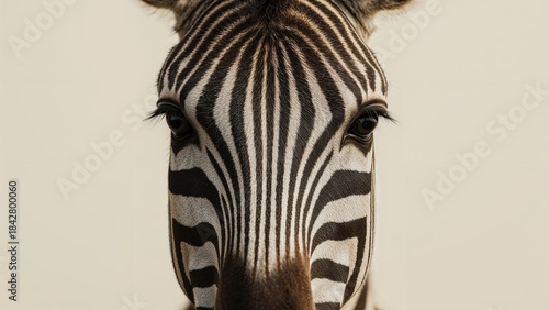 Obraz premium Close-up of a zebra's face showing black and white striped patterns and...