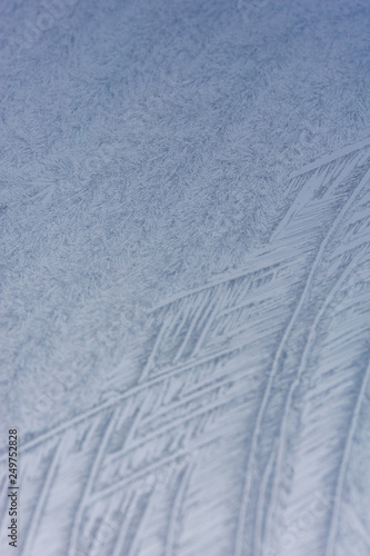 Fototapeta premium Close up of abstract patterns of ice forming on a frozen windshield