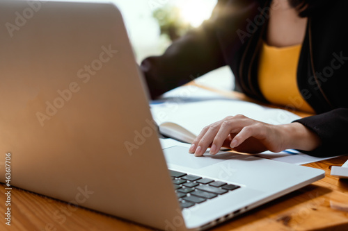 Fototapeta premium Close up of accountant or banker checking investment results, calculates financial savings, calculates annual taxes and economic concepts. Financial calculation concept.