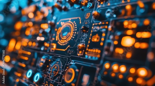 © Lapak, Fototapeta premium Close-up of advanced circuit board with glowing components