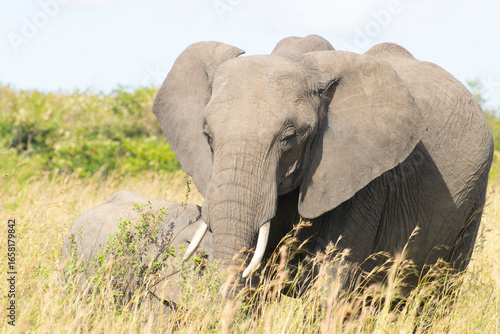 Obraz premium Close-up of African elephant standing in tall grass