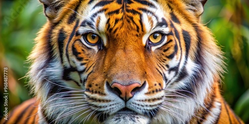 Naklejka premium Close-up of African tiger's face showing intricate details, wildlife,...