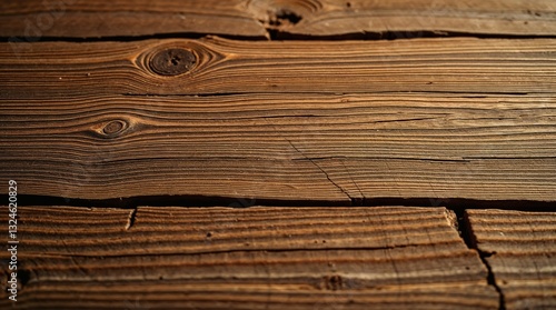 Fototapeta premium Close-up of aged wooden planks with deep cracks, rich grain texture, and warm...