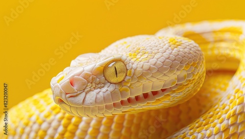 Obraz premium Close-Up of Albino Snake on Yellow Background