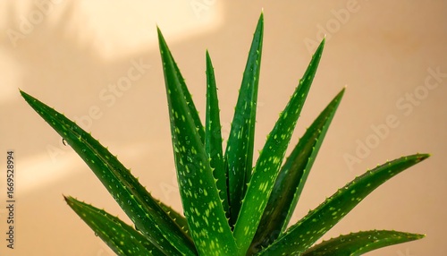 Fototapeta premium Close-up of Aloe Vera Leaves with Water Droplets