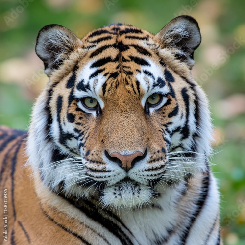 © Magicwave Studio, Naklejka premium Close-Up of Alpha Male Tiger with Bokeh Leaf Background