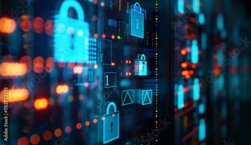 Obraz premium Close up of an abstract digital screen displaying hologram background with...