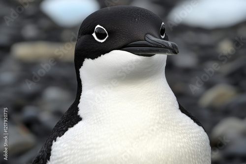 Naklejka premium Close up of an adelie penguin on a rocky surface in antarctica