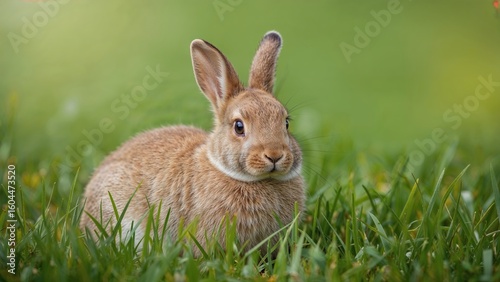 Fototapeta premium Close-up of an adorable bunny resting on lush green grass