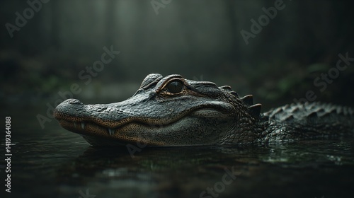 © ROUNDUP STD, Obraz premium Close-Up of an Alligator's Head Emerging from Murky Water